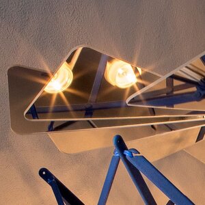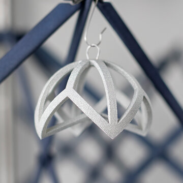 Die beweglich verbundenen Streben bilden eine präzise, geometrische Struktur rund um die Leuchterachse. Mit wenigen Handgriffen lässt sich Form und Größe individuell anpassen – ideal für flexible Dekorations- und private Nutzungskonzepte. Die Pendelkette mit Hängedrehlager ist sicher mit der Raumdecke oder einer Traverse verbunden. In dieser stabilen Position ist eine Gefährdung von Kindern oder Tieren ausgeschlossen.